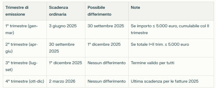 Gentile Cliente Le ricordiamo che il 01 dicembre 2025 scade il termine di versamento dell’imposta di bollo sulle fatture elettroniche del 3° trimestre 2025 (ed eventualmente anche del 1° e del 2° trimestre 2025 se non già versate rispettivamente entro il 31/05 e il 30/09, per mancato superamento di 5.000 euro di imposta di bollo).